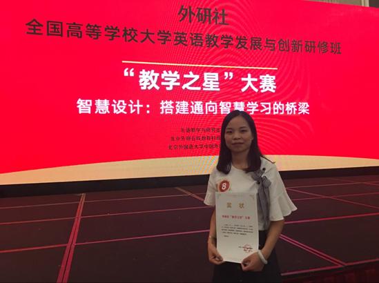 8月4日,2017年外研社“教学之星”大赛复赛第六期在成都落下帷幕,40名参赛教师同台竞技,精彩纷呈。公司太阳成集团tyc122cc大学英语教学部教师吴然菊过关斩将,荣获复赛亚军,这是公司自参加外研社“教学之星”大赛以来取得的最好成绩。