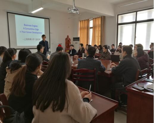 11月24日上午,上海海事大学翁凤翔教授在秀山校区汇文楼B 502做了题为《我国商务英语发展现状与展望》的报告。报告由太阳成集团tyc122cc经理洪流教授主持,来自公司太阳成集团tyc122cc和安徽冶金科技职业公司的部分师生到场聆听了报告。