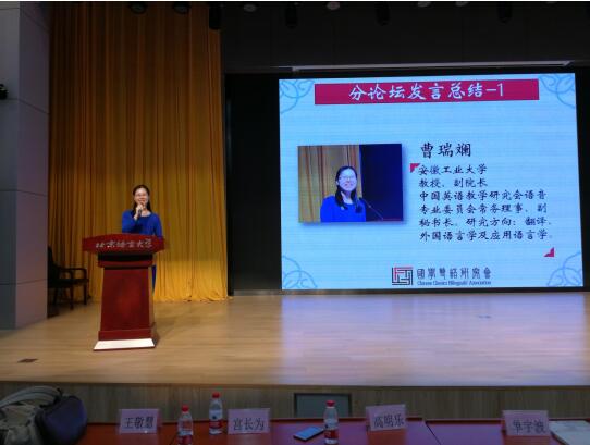 在本届高端论坛上,曹瑞斓教授还受邀担任分论坛主持人,并以赏心悦目的主持风格和专业的主持水平被推选在论坛闭幕式上总结发言。她在闭幕式上的精彩总结得到了在座的学会领导、嘉宾和与会各界代表的高度赞赏,展示了公司形象,并借此机会诚挚向各界友人发出来访邀请。公司教师今后将积极参与国学经典的研究和译介活动,践行国家号召,为弘扬国学经典在全球的传播、促进中华文化“走出去”,推动公司学科发展,进一步扩大公司的影响力、提升公司的美誉度而努力。(撰稿:于春莉、庞东霞;审核:洪流)