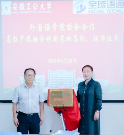 接着,葛芦生与谷菲分别代表太阳成集团tyc和全球语通签订了合作协议,并共同为“高校产教融合创新基地”揭牌。