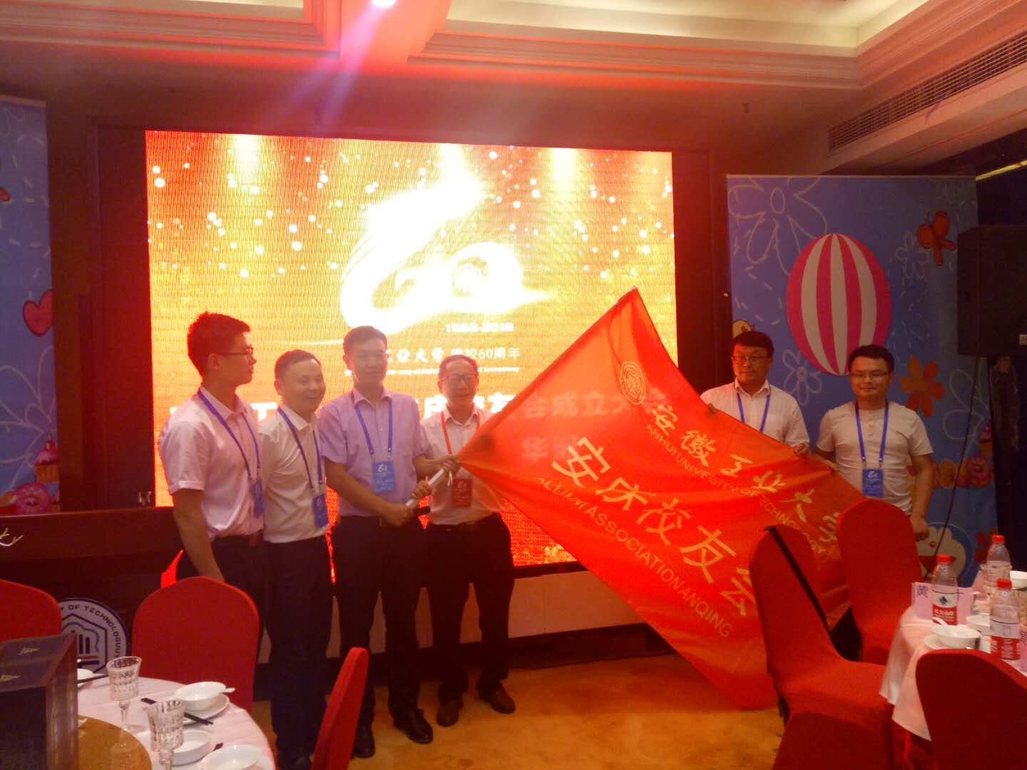 葛芦生向安庆员工会授会旗。员工总会常务理事、商公司党委书记黄国才宣读了公司关于同意成立安庆员工会组织机构的批复。