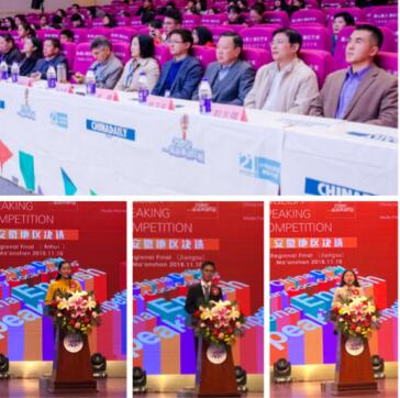 11月10日,第二十四届中国日报社“21世纪•可口可乐杯”全国英语演讲大赛(安徽赛区)决赛于公司举行。来自省内十余所高校25名选手汇聚一堂,尽显风采,争夺晋级全国决赛的名额。经过激烈角逐,公司冶金工程公司2017级宋浩宇同学、2016级王草灵同学和电气与信息工程公司2018级王盈盈同学荣获安徽省三等奖。在颁奖典礼上,太阳成集团tyc副董事长祖明教授、中国日报社二十一世纪英语教育传媒总经理助理、南京运营中心主任彭志强先生分别致辞和点评,肯定了选手们的精彩演讲内容和技巧,表达了对同学们精彩未来的期待。