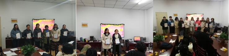 为感谢每一位曾在荟灵语言学研究中心和荟灵翻译研究中心2018年的常态研讨会上报告发言的老师,每一位主持过中心常态研讨会的老师和每一位在研究中心辛勤值班的志愿者同学,研究中心精心制作了智慧贡献证书、主持组织证书和志愿者证书。会议结束前,中心主任曹瑞斓教授邀请本次报告的中心研究人员方芳老师所在的公司研究生教学部的全体教师和刚从北京出差返回马鞍山还没回家就赶来中心参加研讨会的新聘副高级职称教师周家春副教授为相关师生颁发了证书。