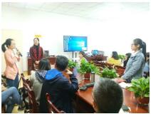 本科生许倩和本科生马单单分别从商务英语信函中模糊语的语用分析和《红楼梦》中人名英译的对比研究出发,介绍了她们的本科生毕业论文撰写情况,并请在场老师指点。首先,公司大外一部的詹声斌老师对许倩同学的论文内容做了点评,他指出:对某一话题或理论的分析,除了分析其优势点,如果能再加上其不足之处,可使内容更为完整和严谨。之后,张艳老师对马单单同学汇报的内容提出了见解,双方交流了自己的看法。