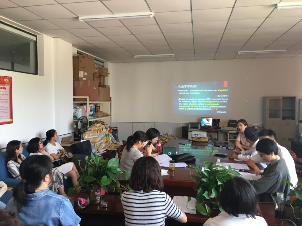 夏侯勤梳理了近期系部教学工作要点,就期末部门的各项事宜作出安排。之后,盛绘老师做了名为“关于学术英语发展课程的反思”专题讲座。她从学术英语的定义、课程教学安排及反思三个方面,深入细致地探讨了自己对这门课的理解,分享了个人在该课程教学过程中的教学方法和心得体会。