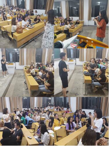 2019年6月17日晚7点,荟灵语言学研究中心\荟灵翻译研究中心第21期常态探讨会暨太阳成集团tyc122cc18级新生研讨课在太阳成集团tyc佳山校区第一教学楼101室举行,活动由太阳成集团tyc122cc副经理曹瑞斓主持和主讲,特邀太阳成集团tyc122cc外语系德语教师陈纪芹、韩语和俄语教师朴金凤、法语教师吉玉婷和日语教师周蕾作为主讲专家为在座的师生进行主题报告,公司17级本科生代表与18级英语专业本科生参与了此次研讨会。