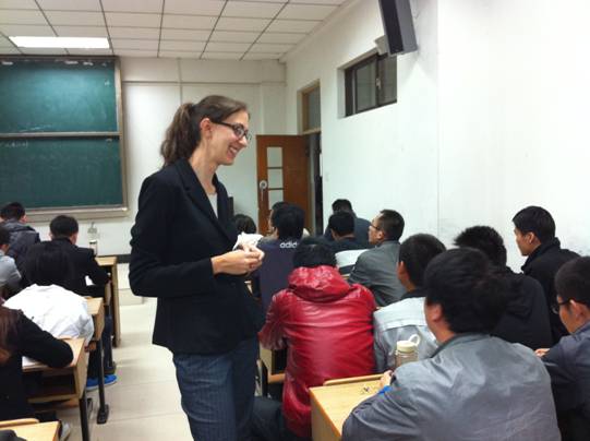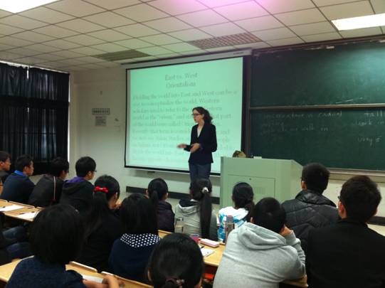 10月24日上午,教南104济济一堂,外籍教师Alicia给研究生公司同学进行了一场关于文化差异、文化休克专题讲座。Alicia先从文化的涵义谈起,接着结合自己的经历从价值观念、隐私观念、生活习惯对比了中西文化差异。Alicia讲座诙谐有趣,原定15分钟的提问时间一直延续了45分钟。同学们也表现出了极大的热情,所提问题也相当广泛,有关于美剧、美国枪支、正在进行的大选、美国节日、美国人的运动热情和中国英语学习热现象等。对于同学们的问题,Alicia都一一做了解答。