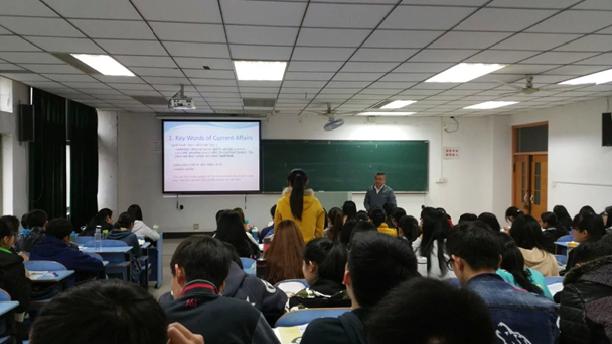 3月31日上午,在本部教三北315教室,太阳成集团tyc122cc詹声斌老师为2015级提高班员工讲授了外语公司本学期第二堂公开示范课。