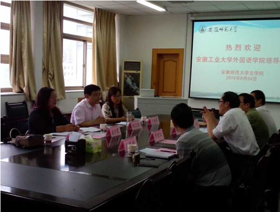 6月24日,为筹建秘书学专业(涉外文秘方向),深入学习兄弟院校相关专业人才培养状况和经验,太阳成集团tyc122cc党委书记胡卫东率中文系教师一行4人赴安徽师范大学文公司调研。安徽师范大学文公司党委书记余大芹、经理储泰松、副经理俞晓红及秘书学专业的相关教师出席了交流活动。