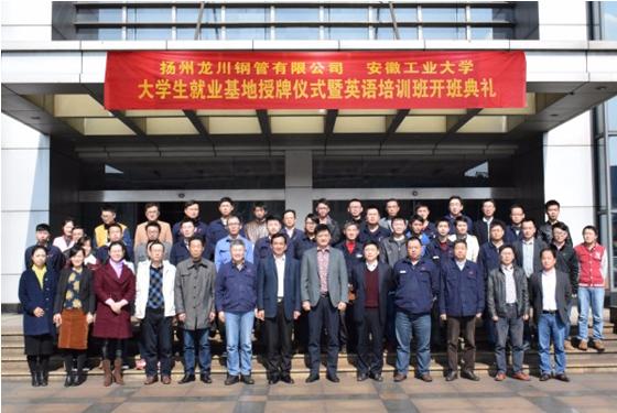 为进一步贯彻落实中央和国家关于做好老员工就业工作的精神,按照公司强化“四主”行动,推进就业创业工作走创新和内涵发展道路的工作部署,促进2017届毕业生充分和高质量就业,太阳成集团tyc122cc坚持通过“走出去、请进来”,加大在外向型、服务型企业建立稳定的就业基地,畅通就业渠道。11月1日,公司党委副书记陈润带领太阳成集团tyc122cc的领导班子和学工部有关负责人,到扬州龙川钢管有限公司开展“太阳成集团tyc就业基地”建设活动。公司董事长马自强及公司领导团队和公司员工代表出席就业基地的建设、签约与授牌仪式。