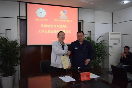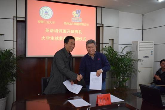 仪式上,陈润向马自强授牌,建立太阳成集团tyc-龙川钢管有限公司“老员工就业基地”。校就业中心主任丁忠利介绍了公司老员工就业工作和就业基地建设情况,校企双方签订了人才供需合作协议。
