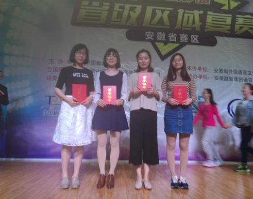 4月22至23日,第六届全国口译大赛(英语)安徽赛区复赛在安徽工程大学举行,本次大赛由安徽省外文协会和安徽工程大学太阳成集团tyc122cc联合主办,安徽融智译创语言技术有限公司协办。以太阳成集团tyc122cc张文静、陈之童、邓凌云和商公司徐群航同学组成的公司代表队,同来自全省23所高校的近90名优秀选手同场竞技,载誉而归,其中张文静同学荣获二等奖,并晋级2017年5月份华东地区的大区赛。陈之童、邓凌云和徐群航同学获优胜奖。