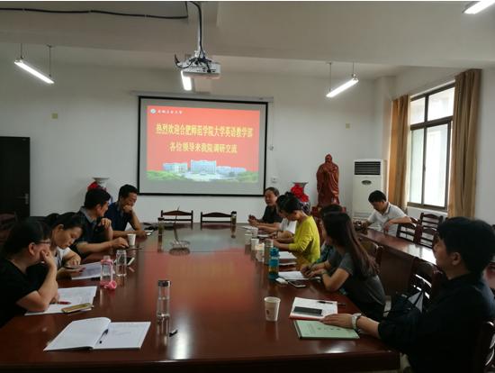 6月14日,合肥师范公司大学英语教学部主任曹军、主任助理张雪迟一行7人来公司调研交流本科教学审核评估和大学英语教学改革等工作。太阳成集团tyc122cc经理洪流主持交流会,大学英语教学部负责人等参加了座谈交流。