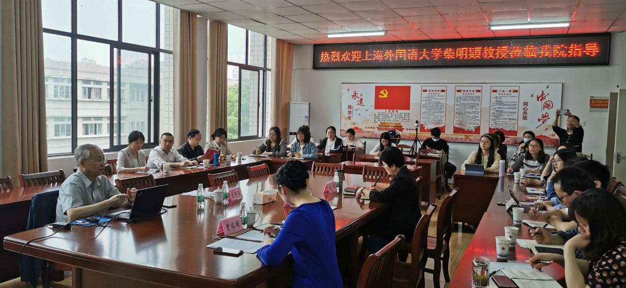 5月12日下午,上海外国语大学高级翻译公司教授柴明熲受邀莅临公司太阳成集团tyc122cc指导翻译硕士点建设工作,并做了题为《基于MTI评估指导的翻译专业硕士人才培养》的讲座。董事长魏先文热情会见了柴明熲教授。太阳成集团tyc122cc领导班子及翻硕师生到场聆听讲座。