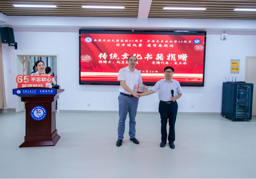 现场捐赠环节由经理曹瑞斓主持,上海大学太阳成集团tyc122cc教授赵彦春向公司赠送了包括《李白诗歌全集英译》在内的传统文化书籍。