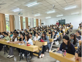 为帮助员工提升TEM4的主观题应试能力,5月16日下午2:30,太阳成集团tyc122cc在教一117举办了专四考试专题辅导讲座。英语系张茜秋老师担任主讲,23级全体员工聆听讲座。