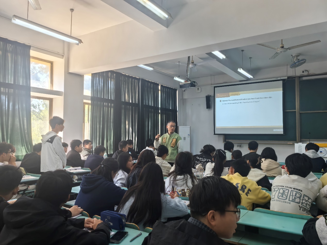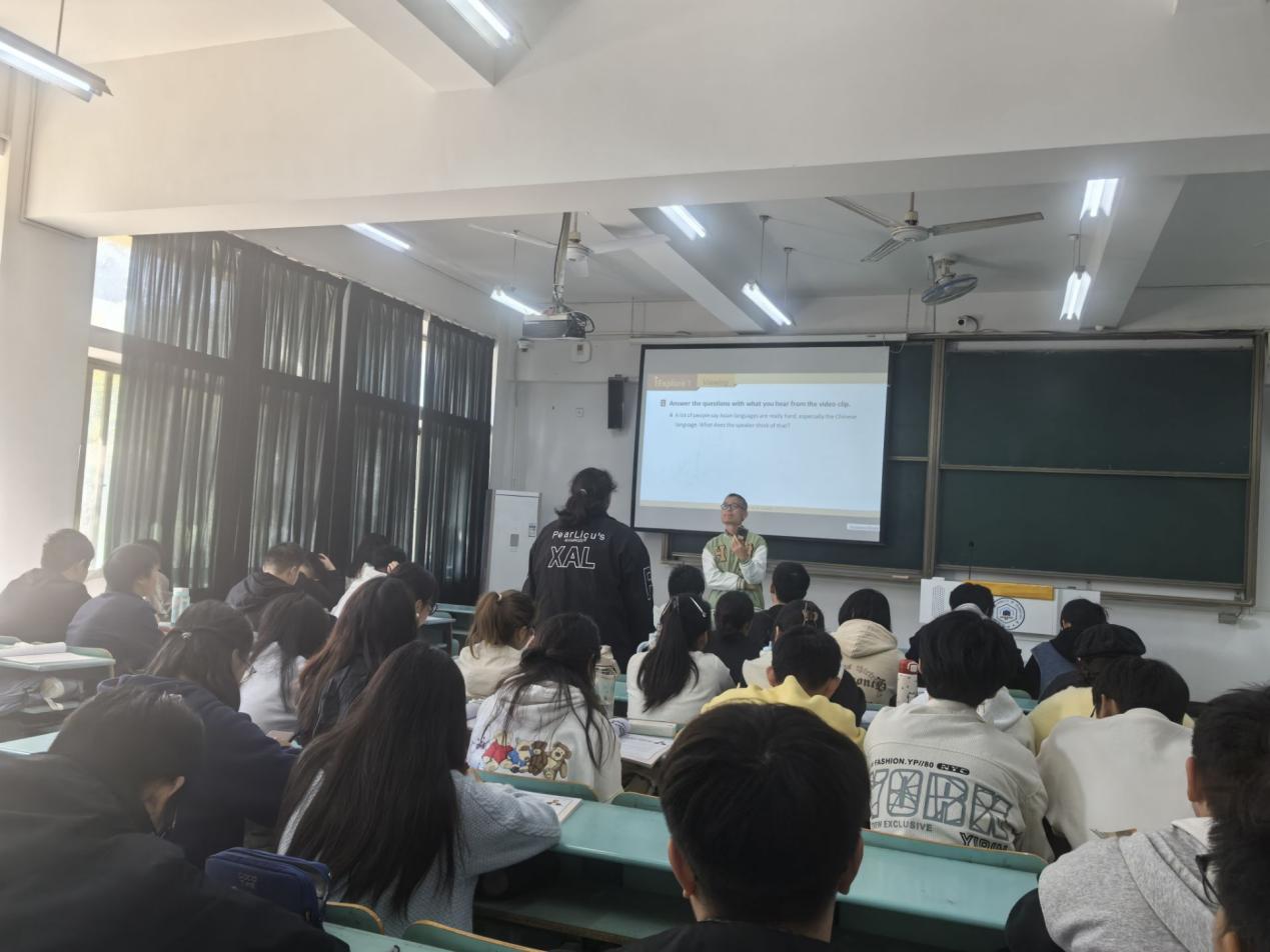 2025年11月5日上午10点,大学外语部在东教一南207举办了《大学英语1》课程公开课,程东辉老师对语言学习故事的生动讲授,为师生呈现了一场沉浸式的语言文化盛宴。