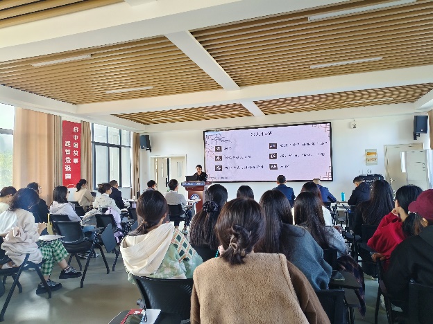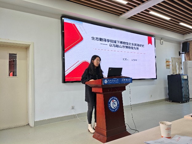按抽签顺序,2025级研究生孟令怡、陈慧颖、李潇潇、2024级研究生陈思雨、胡雨朦、王宝龙、汪倩、尉梦寒、2023级研究生李献献分别作了主题为“中国神话在对外汉语文化教学中的应用研究”“中国传统节日文化融入初中英语教学的路径研究”“跨文化交际中中西方送礼文化差异”“语境顺应论视角下《慎子》的英译对比研究--以谭朴森和郝令喆译本为例”“多模态话语分析视角下渡江战役纪念馆英译研究”“英语立法文本中“as”的语用功能探析”“社交平台新闻机译的‘弱逻辑’陷阱与译者主体性重拾”“生态翻译学视域下博物馆文本英译研究——以马鞍山市博物馆为例”“《红楼梦》‘粥膳’饮食文化英译研究”的学术报告,各评委专家进行现场提问及评分,最终尉梦寒同学荣获一等奖并被推荐代表太阳成集团tyc122cc参加公司第十六届研究生科技学术报告会。最后,评委专家们为各位参赛同学现场颁发了获奖证书。
