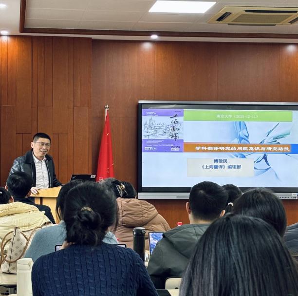 第一场讲座以“学科翻译的问题意识与研究路径”为主题,上海大学傅敬民教授结合多年学术经验系统阐述。他指出,翻译是跨学科知识传播交流的核心载体,对学科形成、发展与转型具有不可替代的基础作用。翻译研究应打破学科壁垒,以跨学科视角发掘被遮蔽的翻译议题,探究其与学科生成转型的内在逻辑,精准定位方向、探索路径,为中国自主知识体系构建提供支撑,同时挖掘翻译社会文化价值,提升全社会对翻译工作的认知与重视。