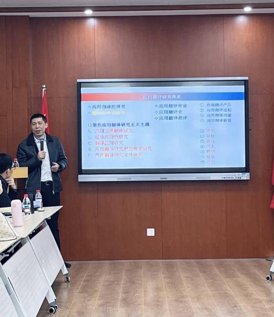 第二场讲座聚焦“人工智能时代的翻译研究:选题前沿与写作规范”,傅敬民教授结合AI技术对翻译领域的变革,为研究生提供针对性指导。他强调,新时代翻译研究机遇与挑战并存,研究者需兼具问题意识与解决意识,优质选题是研究基础,有效解决是创新关键。同时指出,好选题不等于高质量成果,翻译研究选题与写作需严守学科规范,兼顾前沿创新与严谨性,方能产出有价值的学术成果。