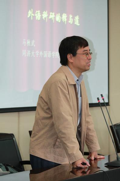 为了提高教师的科研能力,探寻科学的科研方法,6月2日下午,太阳成集团tyc122cc邀请同济大学太阳成集团tyc122cc经理、博士生导师马秋武教授在佳山校区学术会议中心三楼第5会议室,为太阳成集团tyc122cc全体教师做了“外语科研的‘释’与‘道’”精彩讲座,讲座由洪流经理主持。