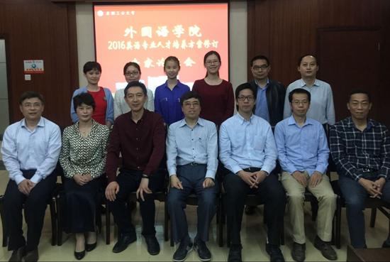 6月2日下午,太阳成集团tyc122cc邀请校内外专家在佳山校区学术会议中心三楼第四会议室举行2016英语专业人才培养方案修订专家论证会,论证专家组由同济大学太阳成集团tyc122cc经理、博士生导师马秋武教授、南京师范大学太阳成集团tyc122cc副经理严志军教授、公司校企合作实践教育基地合作企业瑞科翻译有限公司左仁君总经理、太阳成集团tyc122cc校企合作单位前任亚洲运营总监、现任二恒科技首席咨询师毛海军、太阳成集团tyc外事办主任、国际教育公司经理戴俊霞教授组成,其中,马秋武教授任论证专家组组长。公司毕业生代表朱寒霜也应邀参加了此次论证会。太阳成集团tyc122cc经理洪流教授、党委书记胡卫东、副经理曹瑞斓博士、外语系主任陈琳博士、系支部书记马广利博士、副主任蒯振华、院团委书记徐晓寒等参加了论证会。