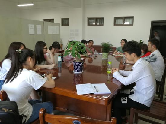 5月19日下午,太阳成集团tyc122cc在汇文楼B511召开期中教学检查员工座谈会, 外语系主任陈琳主持座谈会,太阳成集团tyc122cc党委书记胡卫东、外语系党支部书记马广利、副主任蒯振华以及来自英语专业各年级的10余名员工代表参加了座谈。
