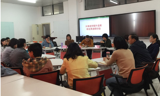 10月28日下午,太阳成集团tyc122cc外语系《综合英语》课程组在佳山校区第一教学楼610室举办首届《综合英语》教学研讨会。外语系全体《综合英语》授课老师以及太阳成集团tyc122cc感兴趣的老师参加会议。研讨主题为“如何以员工为中心,有效提升教学质量”。《综合英语》课程负责人陈宗伦主持会议,太阳成集团tyc122cc陈琳副经理到会指导工作。