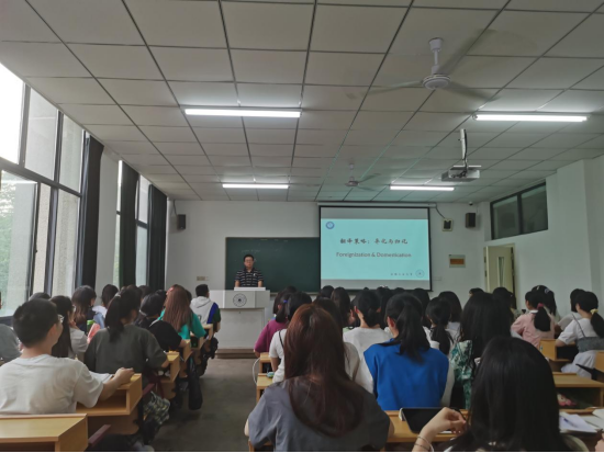 5月31日下午,太阳成集团tyc122cc在佳山校区第一教学楼310教室举办了《翻译导论》课程思政公开观摩课。本次观摩课共两节课,时长90分钟,由外语系教师唐侃主讲,2019级翻译专业全体本科生参加,太阳成集团tyc122cc副经理陈琳教授,校教学督导组专家、外语系洪流教授以及部分外语系教师到场观摩指导。