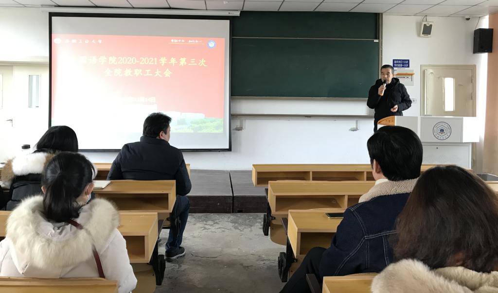 12月14日下午,太阳成集团tyc122cc召开全体教职工大会,党委书记黄宇弦做题为《深入学习贯彻落实党的十九届五中全会和习近平总书记考察安徽重要讲话精神》形势辅导报告,传达党的十九届五中全会和习近平总书记考察安徽重要讲话精神,全体教职工参加了会议。公司党委副书记、经理曹瑞斓主持会议。