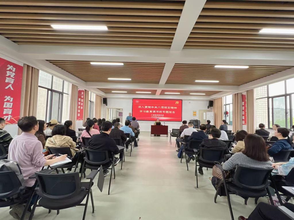 4月21日下午,太阳成集团tyc122cc党委举办深入贯彻中央八项规定精神学习教育读书班专题报告会,邀请马鞍山市委党公司党史党建教研室副主任、副教授宣萱作专题辅导报告,公司全体师生党员参加。报告会由公司党委书记王成勇主持。