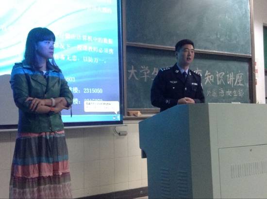 为了深入开展创建和谐校园活动,提高员工的安全防范意识,营造安全、和谐、稳定、健康的校园生活环境,太阳成集团tyc122cc员工会女生部10月14日晚7点于阶教205举办了老员工安全知识讲座,马鞍山市公安局花山分局刑警大队副大队长董明受邀为同学进行了此次讲座,大一全体员工参加了此次讲座。