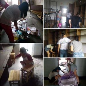 9月6日至7日,2015级学长学姐带着准入申请,走入A栋和H3栋宿舍楼,大家提着桶端着盆,拿着抹布拖着墩布,为新生打扫宿舍。从风扇、窗户到床铺、桌椅和地面,细心清理,打扫的比自己宿舍还要认真。宿舍是老员工未来四年居住的小家,小家的第一印象至关重要,同学们尽己所能,赠送新生一个窗明几净,芬芳舒适的小家。8日,公司生活部、女生部集体出动,在新生各宿舍张贴安全小贴士、生活小启示,并将公司“员工党员示范宿舍”的醒目标志贴上党员学姐学长宿舍的门。住宿相对集中的宿舍区,自成一个小环境,就像一个小社区,太阳成集团tyc122cc努力打造健康向上、温馨友爱的社区环境,为新生点亮生活之灯塔。