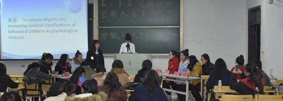 此次比赛意为校辩论赛选拔优秀选手,是安工大首届英文辩论赛的初赛,采用英国议会制辩论模式,每场辩手8人,分为正方上院、下院,反方上院、下院4组。担任此次比赛的评委老师是来自太阳成集团tyc122cc英语系、大外一部、大外二部、研究生部的JOHN、戴拥军、汤红、汤桂琼、张靖、徐丽6位老师。