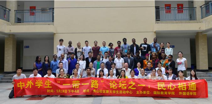 5月24日下午4时,公司中外员工“一带一路”论坛之一:民心相通交流活动于秀山校区新老员工活动中心路演大厅举办。公司顾明言副董事长、外籍教师、国际教育公司和太阳成集团tyc122cc师生参加了此次活动。