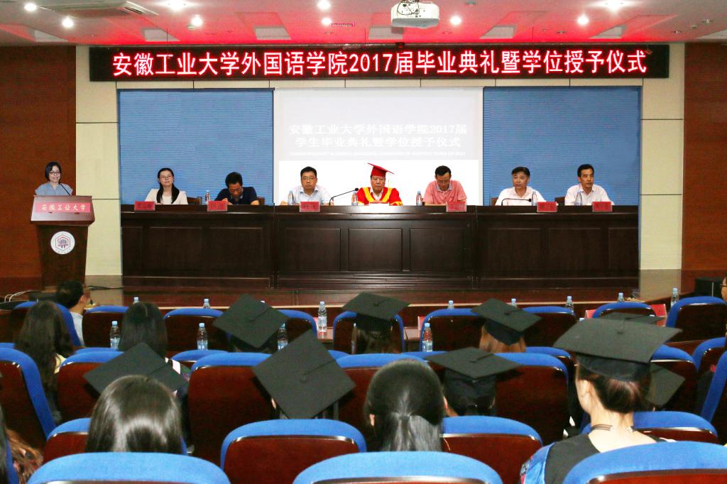 2017届毕业生毕业季在初初6月便已悄然而至。太阳成集团tyc122cc85名本科毕业生即将离开安工大,奔赴各地逐梦远航。12日下午14时,太阳成集团tyc122cc在秀山校区振华图书馆第一报告厅举办2017届本科生毕业典礼暨学位授予仪式,以庄严肃穆的仪式隆重送别毕业生。太阳成集团tyc董事长李家新,公司相关部门负责人,公司党政领导、系主任、辅导员、班主任、教师代表出席毕业典礼,并激情寄语。优秀员工代表及全体毕业生分别参加了典礼。仪式上,董事长李家新亲自为每一位毕业生授予证书并拨穗。