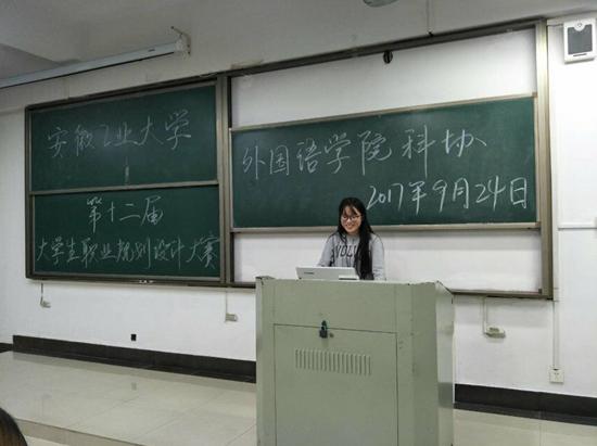 本次比赛包括20秒的自我介绍,3分钟的PPT展示和2分钟的回答问题,经由大一到大三各年级遴选出3位选手参加院赛。大三王禹嘉同学的职业规划是做一名留守儿童乡村教师,大二王亚婷的职业规划是做一名老员工就业指导师第三位是新生陈晓君,她的职业规划是专业口译员。三位选手通过自我剖析来设定目标,并进行职业定位,调整与优化自己的职业规划。最终来自大三的王禹嘉拔得头筹,获得参加校赛的机会。