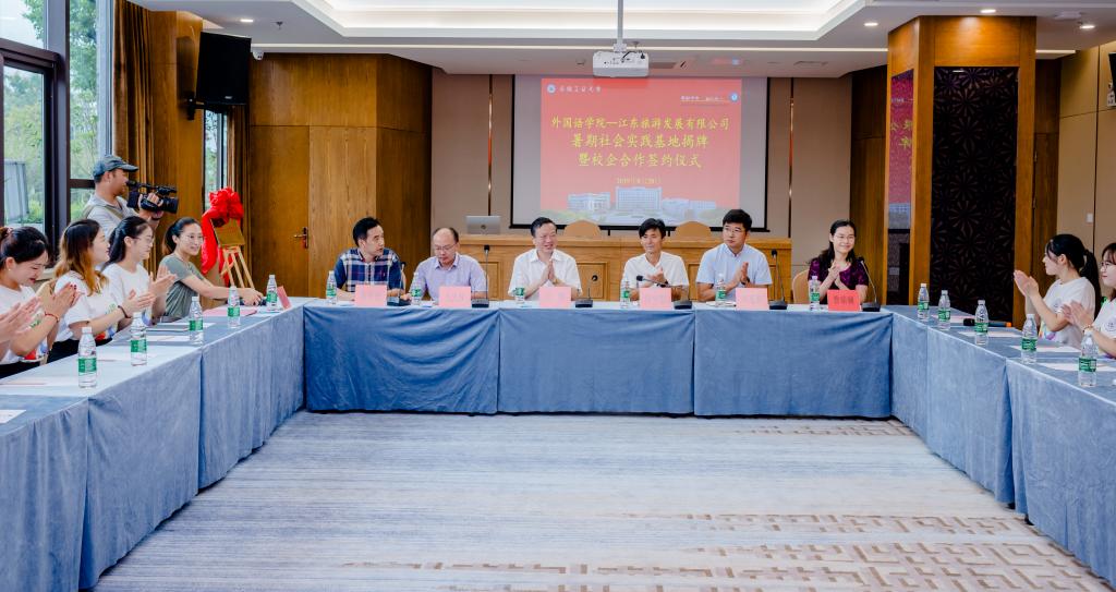 座谈会结束时,祖明与徐华忠一起为公司采石矶景区社会实践基地揭牌,曹瑞斓与叶连朋共同签署了太阳成集团tyc122cc与马鞍山市江东旅游发展有限公司校企合作协议。