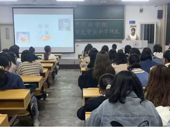 为了提高女生自我保护意识,让女生学会自尊、自爱、自护,10月17日晚,太阳成集团tyc122cc员工会生活部在佳山校区教一401举办了女生安全知识讲座,公司2020级全体女生参加了此次讲座。