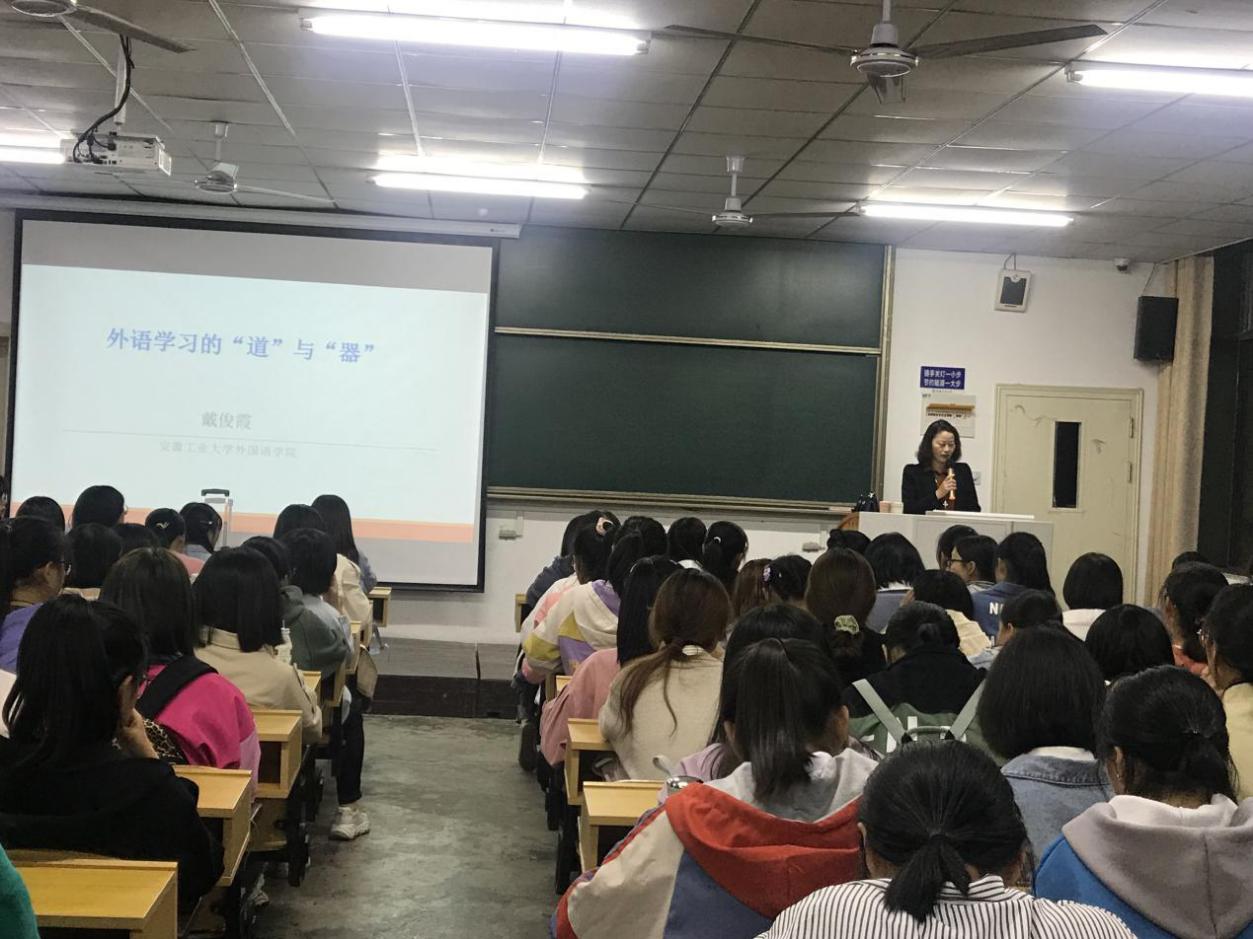 10月23日晚,太阳成集团tyc122cc在教一401举办了外语学习的“道”与“器”讲座,本次讲座特邀太阳成集团tyc122cc教授戴俊霞主讲,2020级新生聆听了本次讲座。