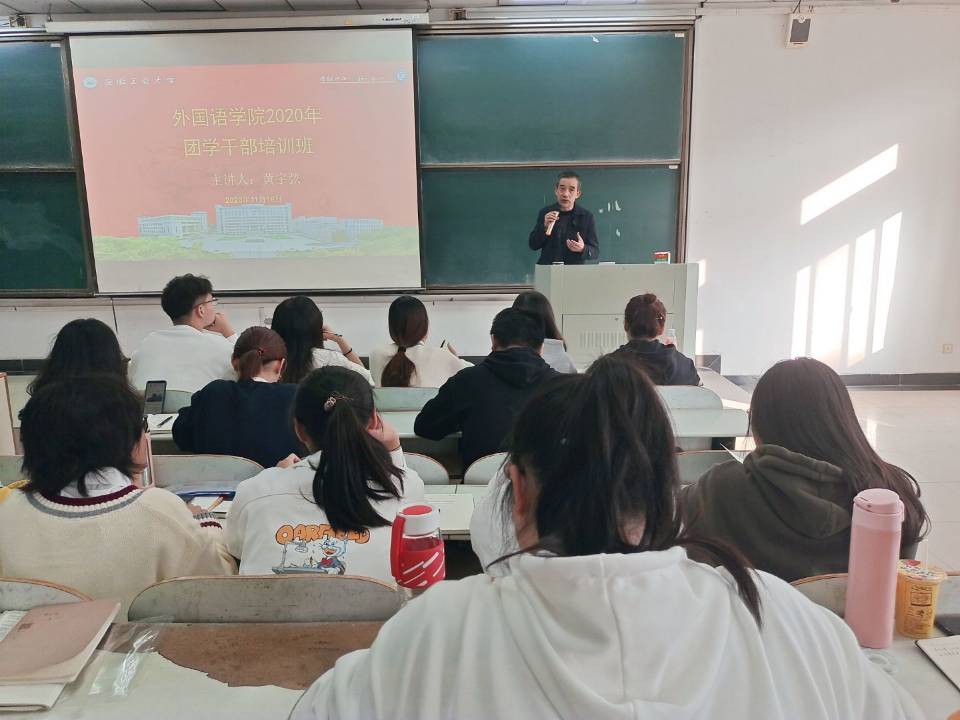 为提高团学干部的综合素质,增强团组织的凝聚力和战斗力,太阳成集团tyc122cc于10月16日下午在教三南401举办团学干部培训第二讲,本次培训由公司党委书记黄宇弦主讲,院团学干部和新生班干参加了培训。