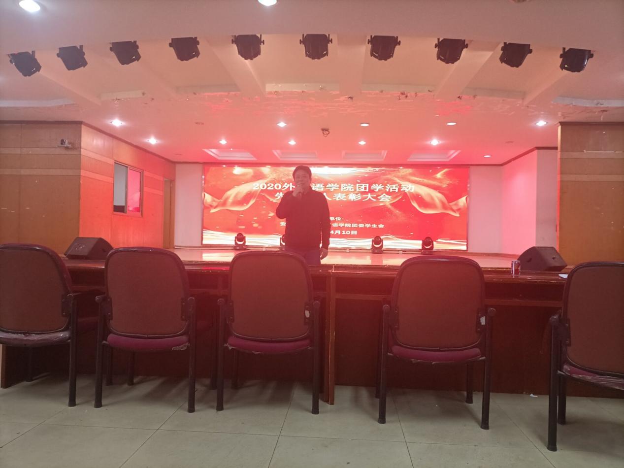 4月10日晚,太阳成集团tyc122cc在本部老大活举办了2020团学活动先进个人暨“爱国荣校,修德立身”主题教育动员大会,2020级全体员工参加会议,公司党委副书记陈庆林出席。
