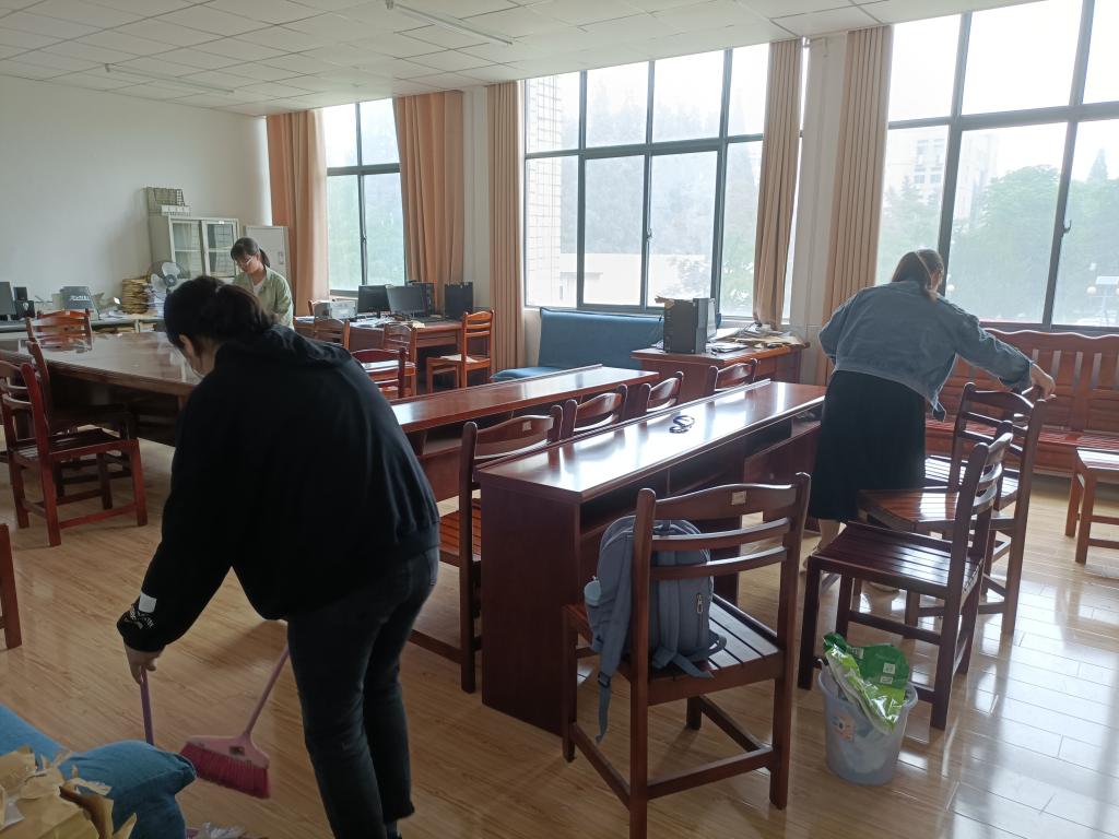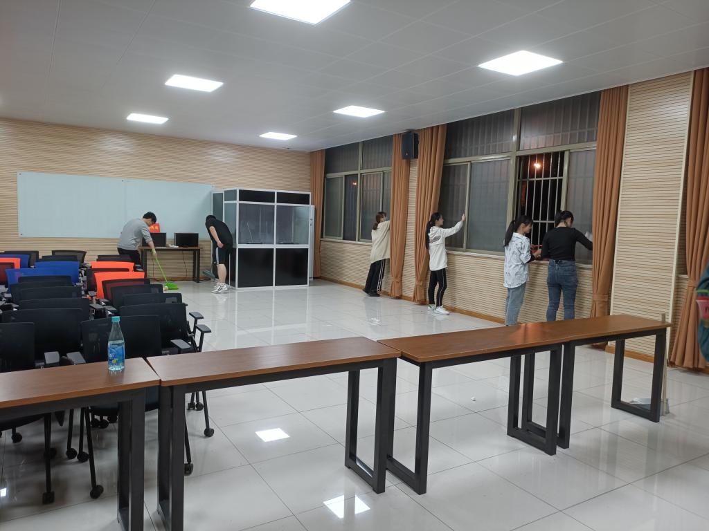 为积极贯彻落实公司《关于组织开展员工劳动教育宣传与实践周活动的通知》要求,充分发挥劳动教育的实践育人功能,在员工中营造劳动光荣的良好氛围,5月6、7日太阳成集团tyc122cc组织员工分批参与佳山校区教一和教二部分教学场所、多功能语音室、办公场所、会议室等清扫、保洁劳动实践活动。活动期间,同学们认真负责,整理文件、擦拭桌面、打扫地面,每个人都努力清理自己负责的卫生区域,亲身体会到了校园保洁工作人员的不易,