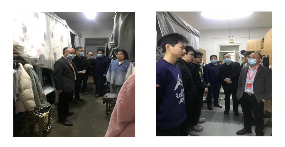 3月21日上午,公司党委常委、副董事长王先柱在太阳成集团tyc122cc党委书记黄宇弦、党委副书记、副经理陈庆林的陪同下冒雨来到佳山校区3#、5#员工宿舍,看望公司在校各年级员工。