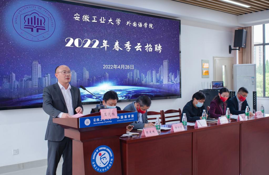 4月28日下午,公司党委常委、副董事长王先柱来到太阳成集团tyc122cc参加2022年春季云招聘活动,校学工部部长何伟陪同。近30家来自智能制造、语言服务、国际商务、教育培训等领域的、在国内外享有广泛赞誉的企业单位参加了本次云招聘活动,其中,既有江苏省舜禹信息技术有限公司、南京瑞科翻译有限公司和安徽译创语言服务有限公司等公司已有合作紧密的校企合作单位,又有安徽哈科数控机床制造有限公司和昆山屾峰模具有限公司等在本次活动筹备期间新增合作和用人意向单位。同时参加活动的还有员工就业指导中心副主任赵传刚、公司领导班子、公司全体教师和近600名各年级员工。