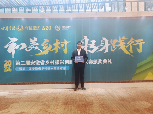 4月27日下午,第二届安徽省乡村振兴创新创业大赛颁奖典礼暨安徽省乡村振兴高峰对话在合肥举行。2022级翻译专业孙志文同学主持的项目《徽丰科技-科技赋能助力农业现代化》获得大赛二等奖,同时孙志文还获得了乡村振兴先进个人荣誉称号,全省仅42人获此称号。