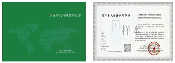 为深入贯彻落实习近平总书记关于加强和改进国际传播工作重要讲话精神,培养新时代的中国文化国际传播优秀人才,中国外文局教育培训中心组织相关专家,研发推出国际中文传播教师测评体系及人才培养方案,着重培养精通中国语言文化并且深刻了解国际传播理论、国际传播规律的高端人才。考试通过考试后,获得由中国外文局教育培训中心颁发的《国际中文传播教师证书》,该证书是相关机构选拔出国汉语教师及聘用外籍教师的参考依据。