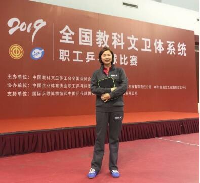 4月1日,“当好主人翁、建功新时代”全国教科文卫体系统职工乒乓球比赛决赛在全国总工会国际交流中心拉开帷幕,公司盛绘老师凭借过硬的技战术水平和沉稳的临场发挥,一路过关斩将,获得安徽省女子青年组季军,并代表安徽省参加了此次全国比赛,在比赛中不畏强手,进入女子单打16强。