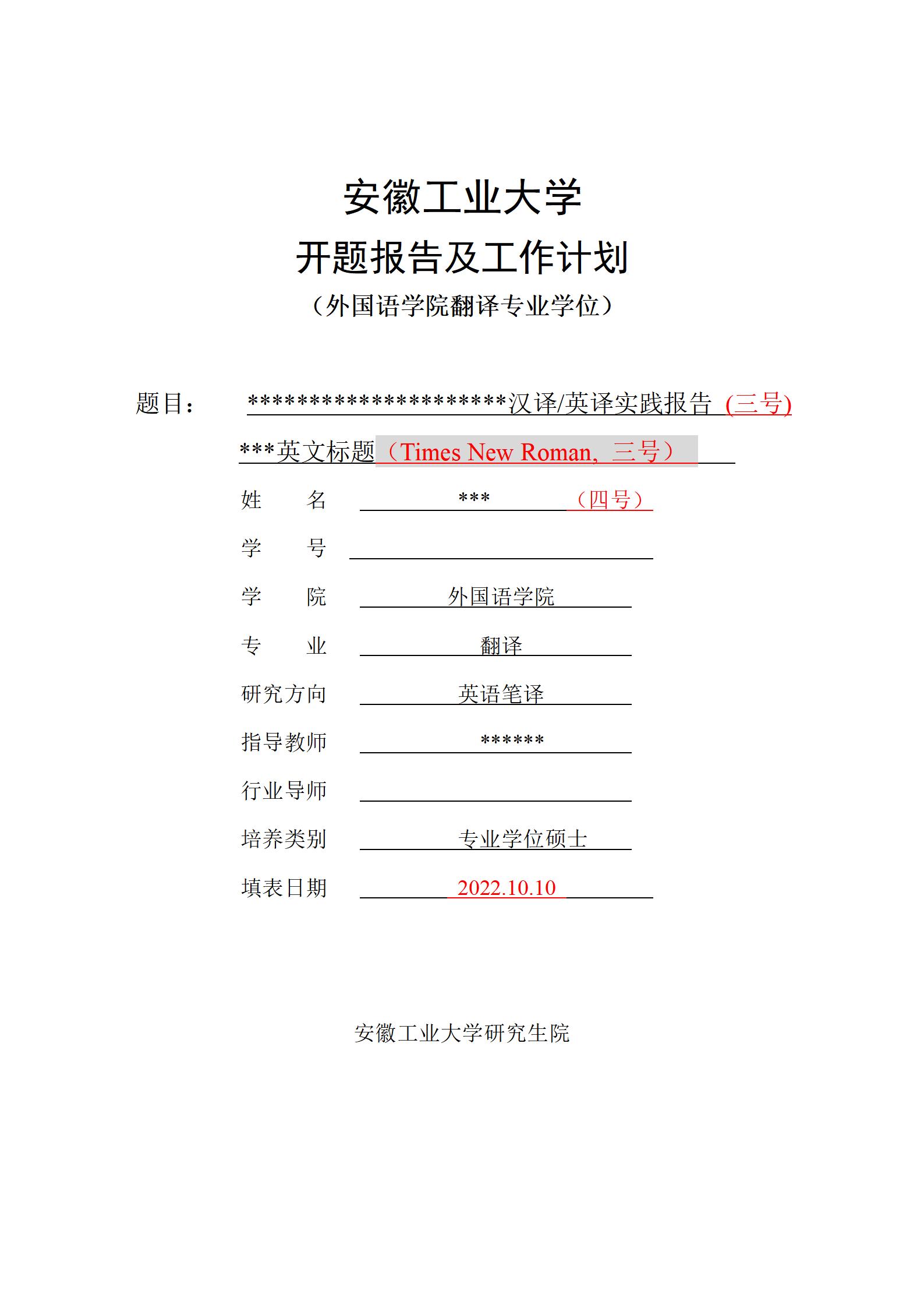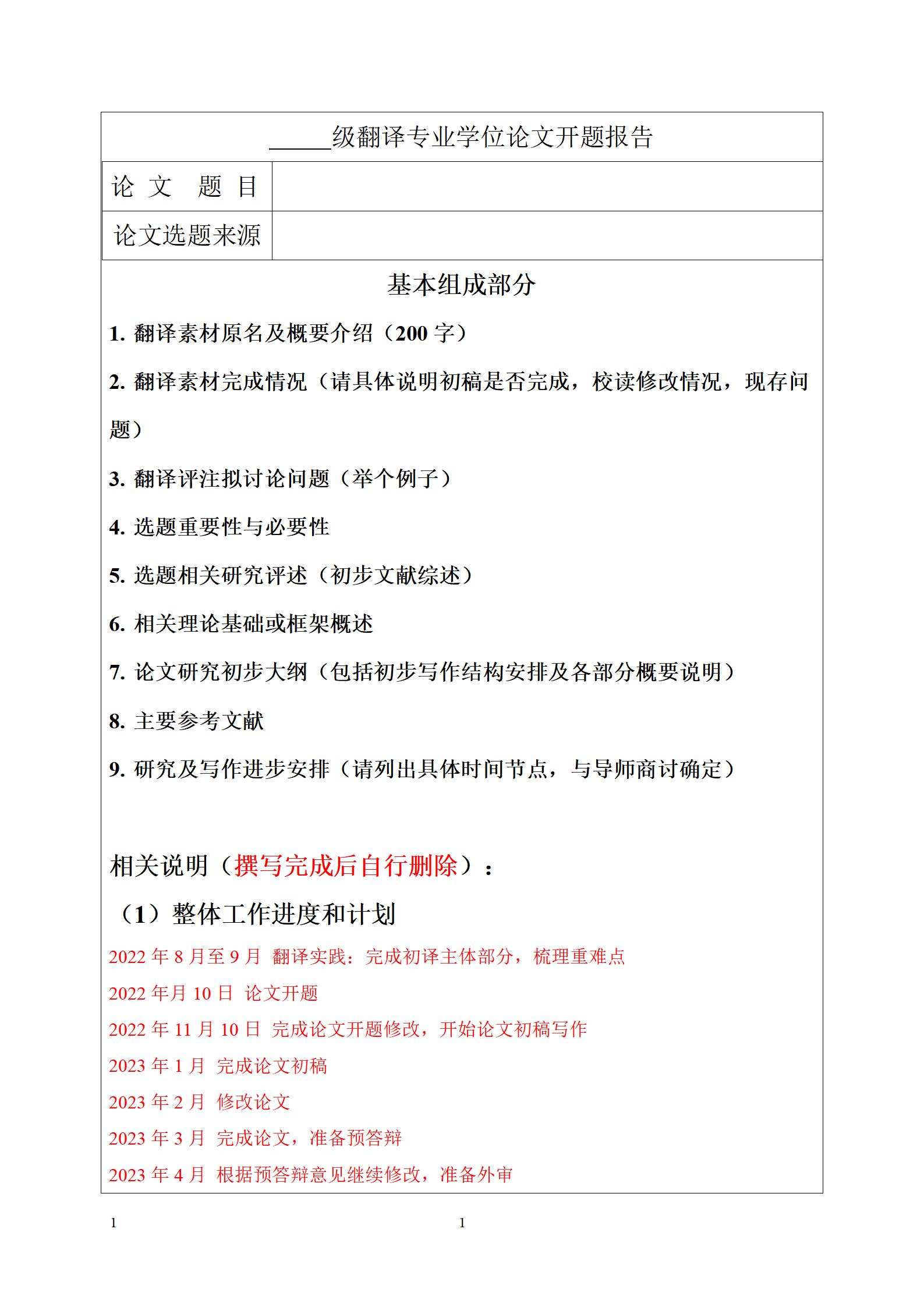 翻译硕士开题报告格式模板(外院设计2022.10.10)